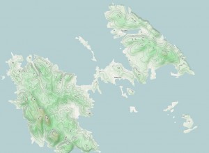 Zur Übersicht eine topographische Karte von Astipalea. Der Hauptort mit unserem kleinen Hafen befindet sich ssw-lich der Landenge, die die beiden Teile der Schmetterlingsinsel verbindet.