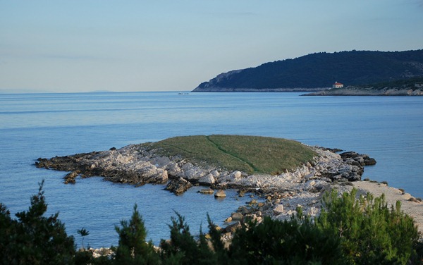 [Überreste der jüngsten militärischen Vergangenheit der Insel, die ja bis 1989 für Nichtkroaten tabu war; hier eine Halbinsel als Sperrgebiet, mit Bunkern und ähnlichen Hinterlassenschaften]