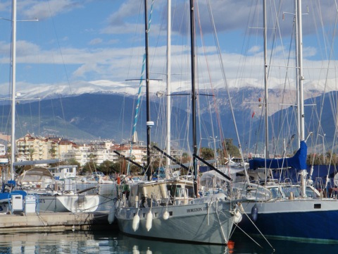 DAS ‚Wahrzeichen‘ von KALE: natürlich ein Sarkophag. Es stand nicht immer im Wasser, sondern wie die anderen an Land. Doch dieses Land um KALE senkt sich seit Jahrhunderten ab, weil die afrikanische Platte auf die europäische stößt… ein bekanntes Problem. Nun reagiert aber dieses Land hier anders, als die Wissenschaftler es berechnen, denn es senkt sich, statt sich zu heben. Leider konnten wir die versunkene lykische Stadt nicht sehen, denn das Wasser war zu trübe im Winter.